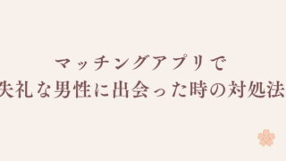 マッチングアプリで失礼な男性に出会った時の対処法を解説。傷つかず、安全に、上手に距離を置く方法と、失礼な人を見分けるポイントをお伝えします。