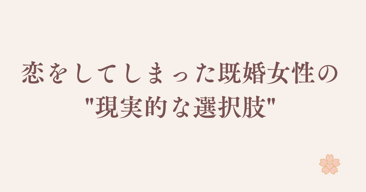 この記事では、恋をしてしまった既婚女性が取れる「現実的な選択肢」を、感情論ではなく、冷静にお伝えしていきます。