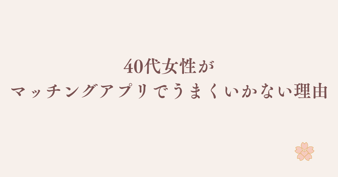 この記事では、40代女性がマッチングアプリでうまくいかない本当の理由と、
