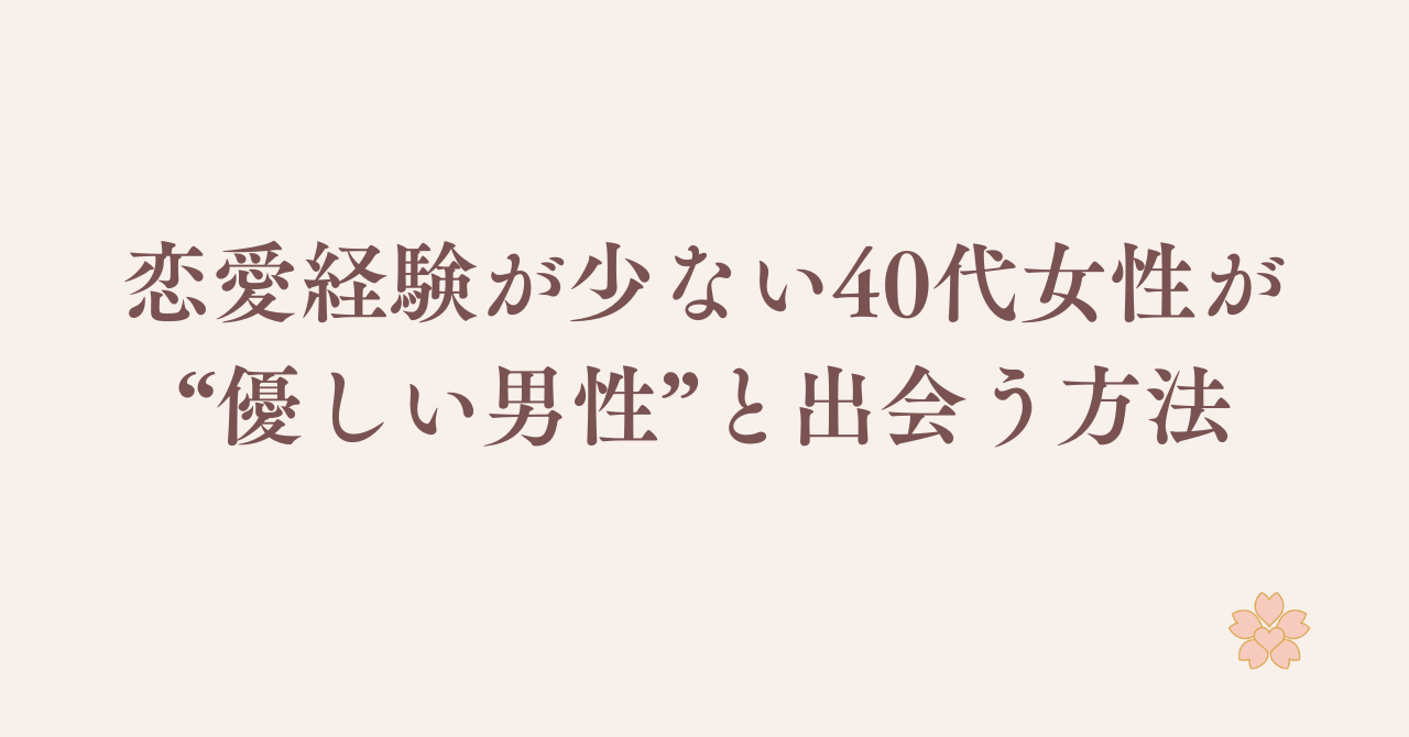 この記事では、恋愛経験が少ない40代女性が、優しい男性と出会う方法をお伝えします。