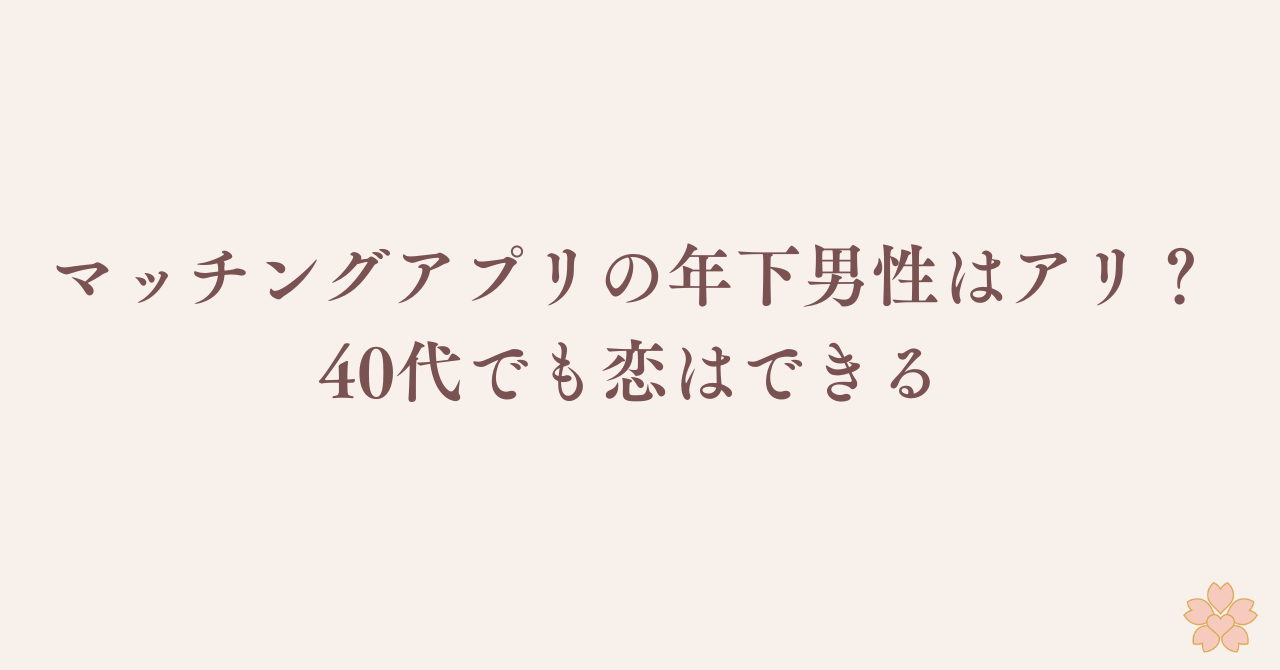 実際、マッチングアプリでは、年下男性から40代女性へのアプローチが増えています。